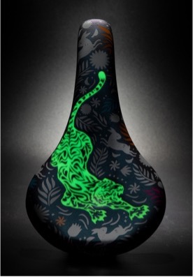 老虎雄霸山林,因此维乐特地选用专业系列SENSO的“Edge 158”(VL-3593)登山车坐垫,让车友可以骑虎緃横山林。今年两款虎年坐垫各有特色,喜爱夜骑的车友们绝不能错过威猛的“夜光虎”,坐垫上满布花草树叶,还有明年生肖的白兔提前现身,狂奔狩猎状的老虎特别采用夜光材料,只要在光线昏暗处,老虎就会周身发光,展露王者光芒。
